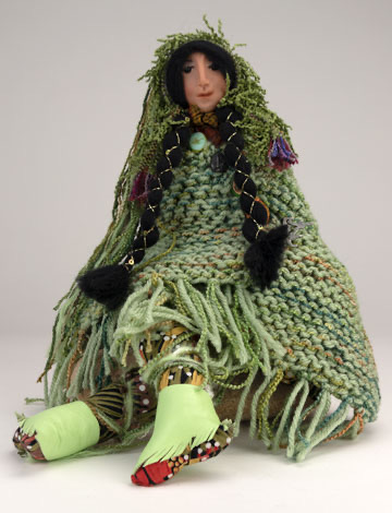 The day begins with a slide presentation, followed by creating an image of your Guardian Spirit using a pre-sewn body. Gretchen demonstrates the sculpting of a face. All materials are provided, however you may bring special totems if you wish. I have a lot of hand knit shawls for you to choose from for your doll. Bring a bag lunch.
