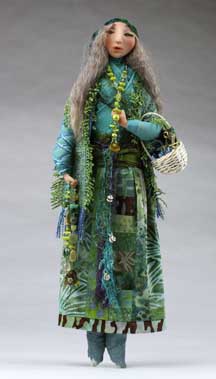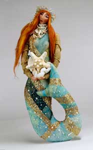In the VERY busy TWO day workshop, students will sew and stuff the body, made from my pattern, hand sculpt the face, and decorate the doll using my materials and shells. If you have fabrics or shells of your own that you want to incorporate into this piece, feel free to bring them with you.
